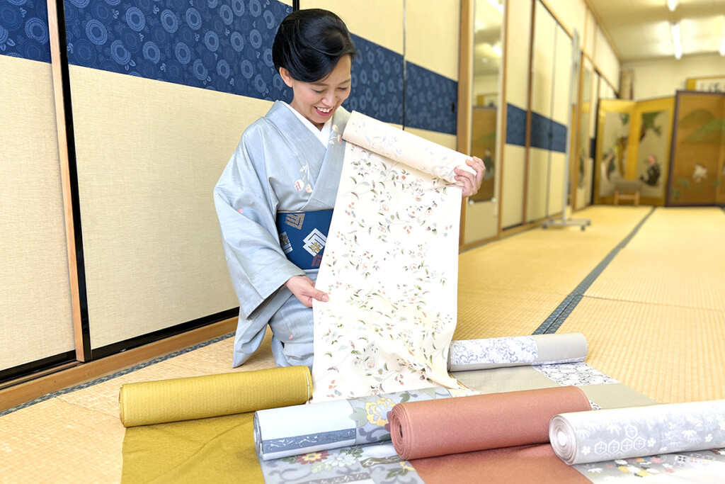 現在当社では、着物の販売だけでなく、着付け、ヘアメイク、レンタル、撮影、着付け教室、パーソナルカラー診断、茶道教室までワンストップで対応しています。お客様から「着物の事ならここに来ると何とかなる」と思ってもらえることが嬉しいですね。
