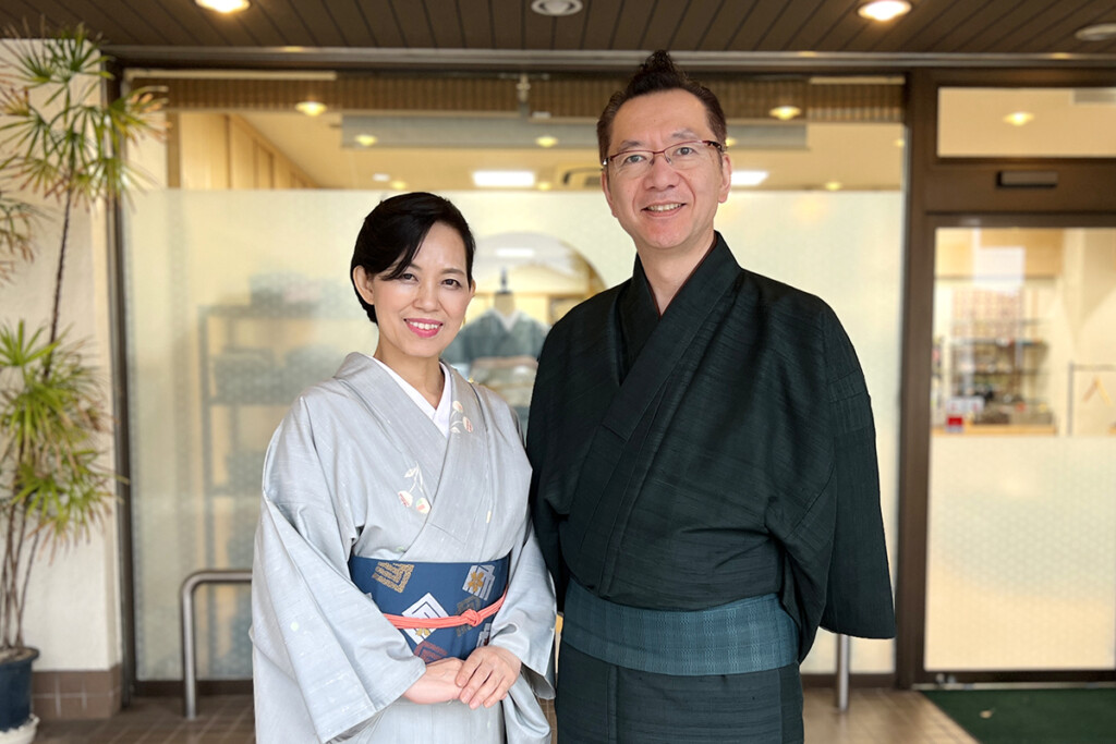 この仕事に就く前はアパレル業界を志望していたのですが、大学時代にワーキングホリデーで訪れたニュージーランドで、自分がいかに日本のことを知らなかったかを実感しました。帰国後、「日本の文化をもっと知りたい」と思い、着物の世界に飛び込みました。最初は「3年くらい勉強したら違う業種に転職しよう」と思っていたのですが、当時の社長(現・夫)と出逢い結婚し、家業であるたけ屋みずほを継ぐことになりました。