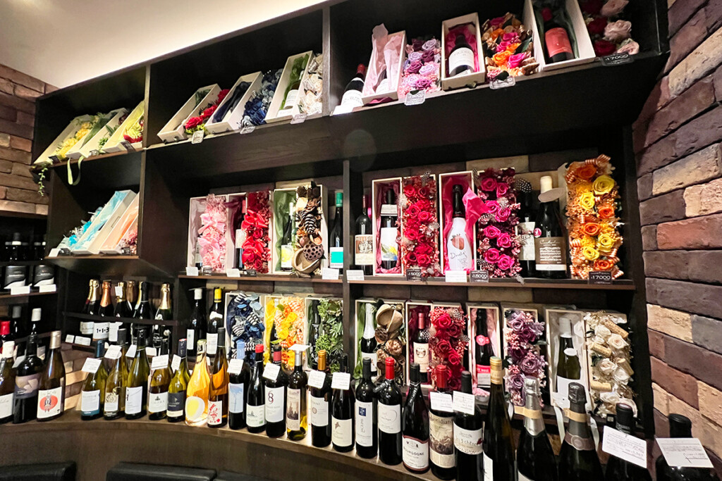 ギフトに特化した花屋として、花束やアレンジメントはもちろん、10年前からはワインも取り扱い、贈り物の幅を広げています。ギフトをよりお客様に選んでもらいやすい店づくりを心がけています。