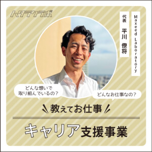 働くことは、ただ生活のためだけではなく、自分の使命を果たす場でもある。そう語るのは、Maxeed Laboratory(マキシードラボラトリー)代表 平川僚将さん。学生時代からキャリア支援に関わり、会社員を経て独立。今では、人生に迷う人に寄り添い、”自分らしい生き方”を後押しする存在です。今回は「教えてお仕事」というテーマで、平川さんのお仕事の魅力ややりがい、そして『ハタラク』意味について伺いました。